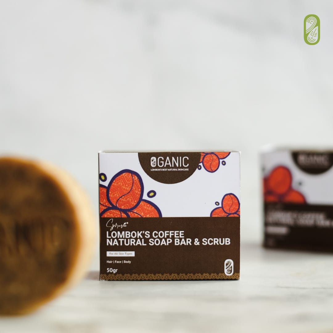Oganic Lombok's Coffee Natural Soap Bar & Scrub kaya akan kandungan Kopi Robusta lombok sebagai antioksidan yang baik untuk kulit, mengangkat sel kulit mati dari permukaan kulit dengan lembut. Butiran alami kopi sebagai eksfoliator alami membuat kulit terasa lembut dan halus, serta membantu menjaga kekencangan kulit. Coffee Natural Soap Bar & Scrub Oganic Lombok memiliki aroma kopi yang khas dan memiliki efek menenangkan, sehingga secara tidak langsung tubuh akan lebih rileks, begitu juga dengan orang-orang di sekitarnya. Oganic Lombok's Coffee Natural Soap Bar & Scrub dapat digunakan pada wajah dan tubuh.