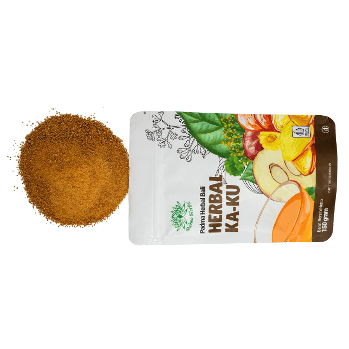 Kandungan Bahan: jahe merah, jati belanda, jinten, kunyit, kumis kucing, kelor, mahkota dewa, meniran, pegagan, sidaguri, temulawak, gula aren