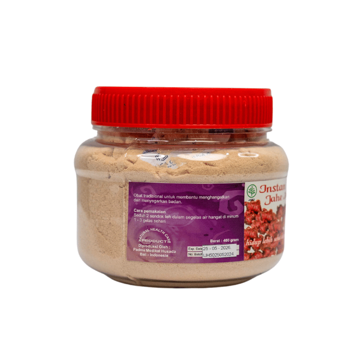 Rasa Hangat dan Nikmat: Kombinasi rasa pedas yang khas dari jahe merah dengan manis alami memberikan sensasi hangat yang menenangkan.Mudah dan Praktis: Cukup tuangkan satu sendok ke dalam cangkir, tambahkan air panas, aduk, dan minuman jahe merah hangat Anda siap dinikmati. Manfaat Kesehatan Jahe Merah : membantu daya tahan tubuh, mengurangi peradangan/bersifat anti-inflamasi, membantu mengatasi kembung masuk angin dan menghangatkan tubuh