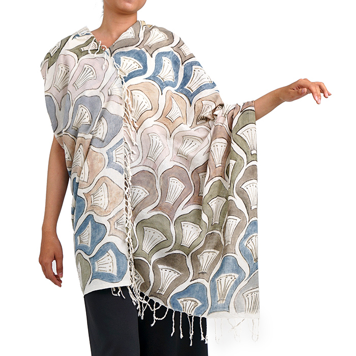 Selendang lukis motif cangkang kerang mutiara
