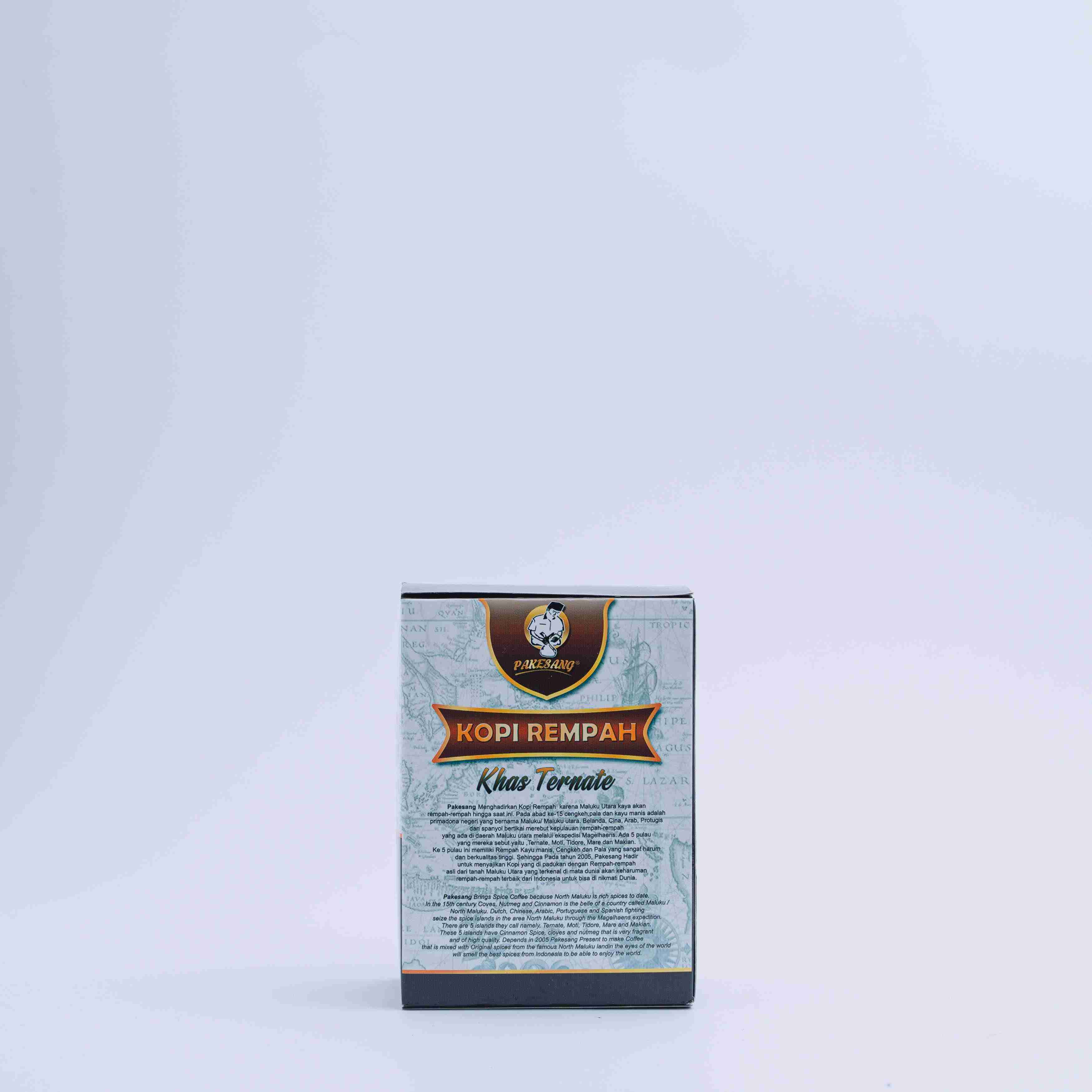 Kopi rempah khas Ternate terbuat dari kopi robusta yang dipadukan dengan rempah-rempah asli dari tanah Maluku Utara yang terkenal dimata dunia akan kualitas rempah-rempah terbaiknya.