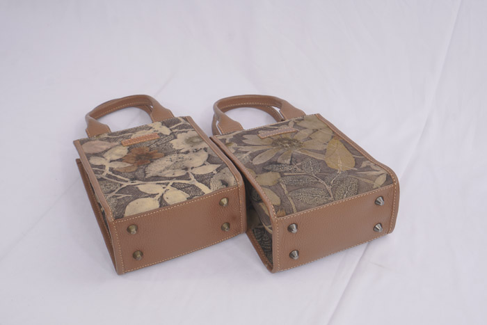 tas tangan yg imut dan design yg elegant dimotif dengan tehnik ecoprint yg memanfaatkan bunga2an dan dedaunan sekitar