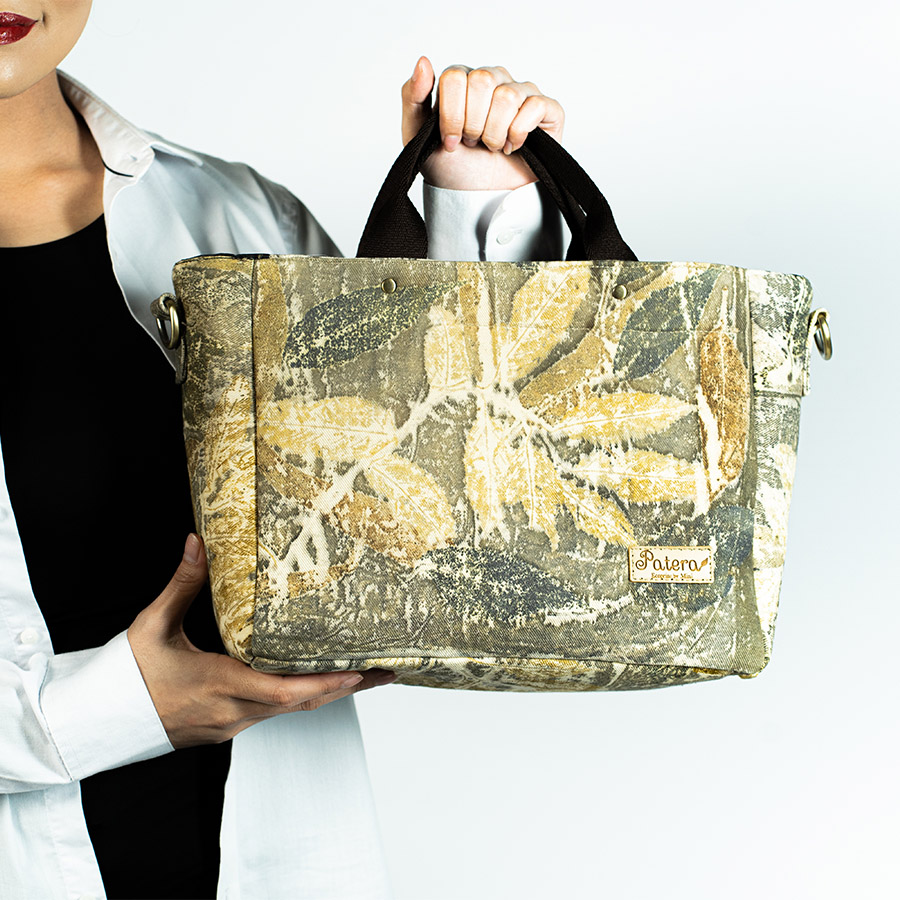 Tas dengan bahan Kanvas Ecoprint, Inner waterproofm, Tali Webbing
