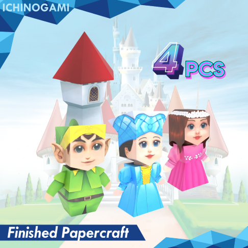 - Jenis Papercraft: Kolaborasi Karakter Dongeng (4 Pcs: Nirmala, Oki, Ibu Peri, Kastil)