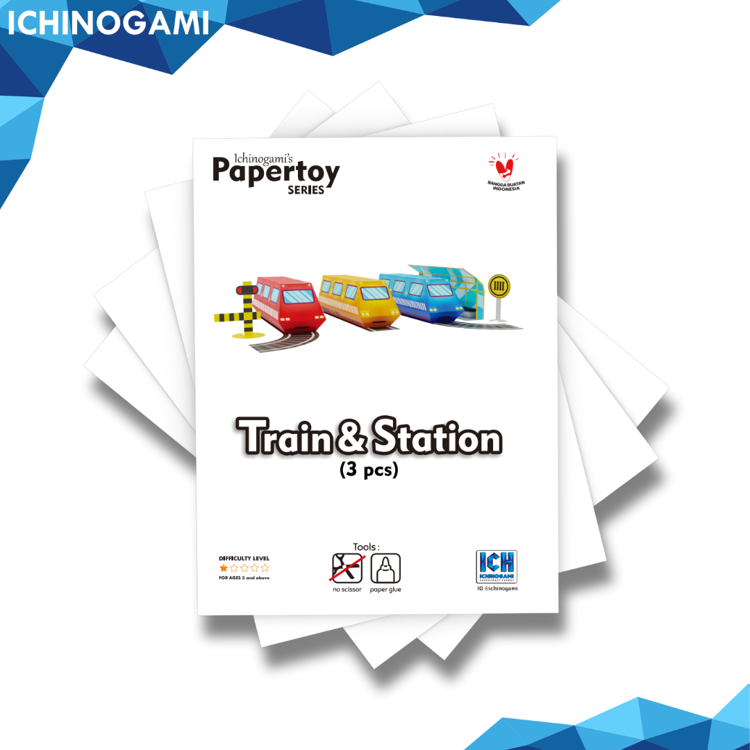 Papercraft Ichinogami (DIY) Train & Station, Isi 3 pcs Press Out (terpotong)