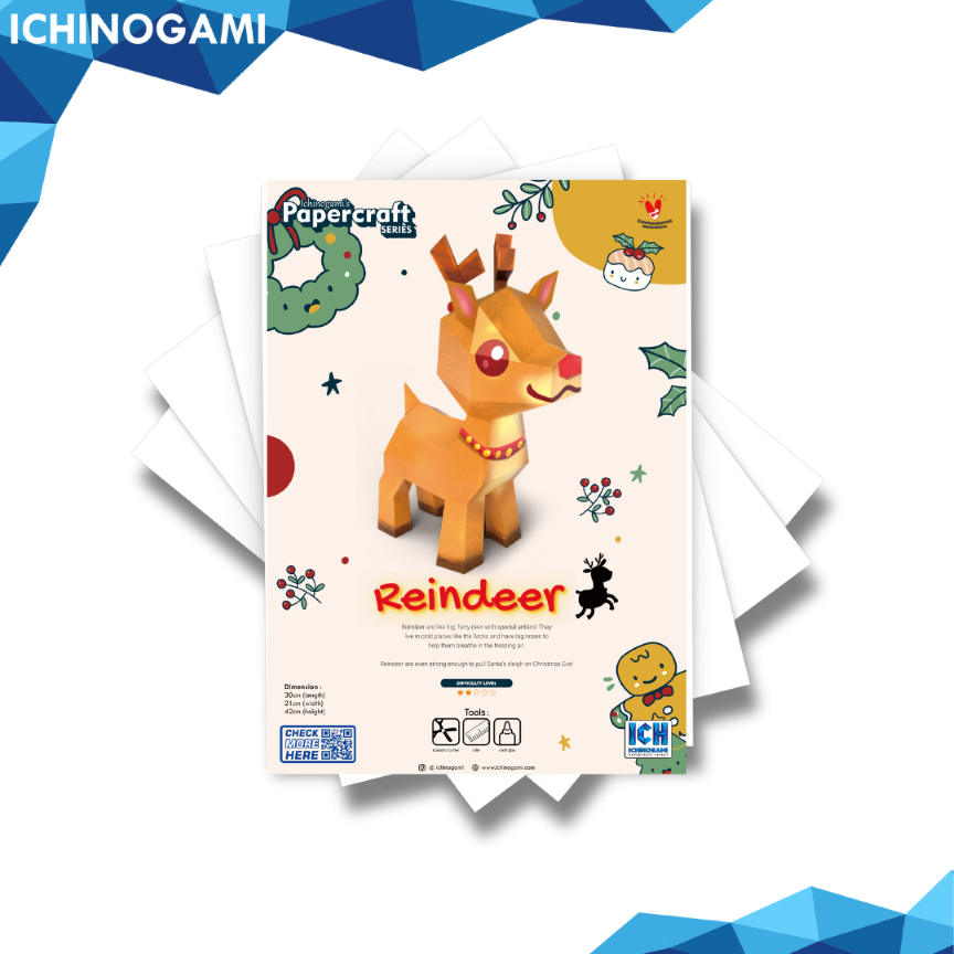 Sambut musim perayaan dengan Papercraft Reindeer ICH 40 cm dari Ichinogami! Model rusa kutub berukuran tinggi 42 cm ini sangat mengesankan, dirancang dengan detail yang elegan dan siap menjadi dekorasi Natal yang sempurna. Ideal untuk pecinta dekorasi musiman, keluarga yang mencari aktivitas kreatif, atau siapa saja yang ingin menambahkan sentuhan magis pada suasana Natal.