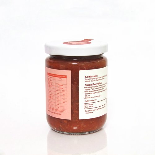 Kandungan Bahan: Tomat segar, potongan tuna, pasta tomat, bawang merah, bawang putih, cabai, minyak canola, rempah-rempah