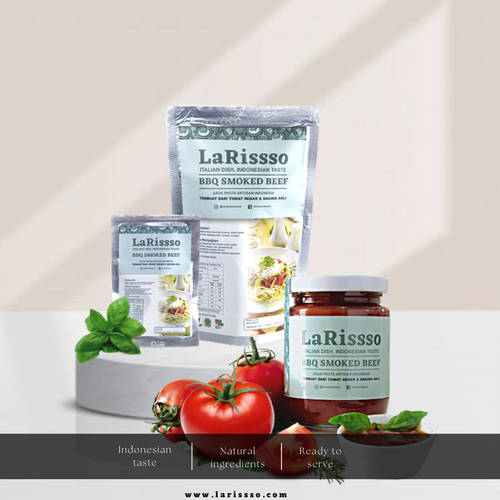 Saus Pasta BBQ Smoked Beef LaRissso merupakan saus pasta dengan aroma barbeque yang terbuat dari bahan-bahan natural yaitu tomat segar yang dipanen langsung dari para petani, ditambah dengan potongan daging asap, kemudian dimasak dengan menggunakan minyak canola ditambah dengan bumbu-bumbu juga perpaduan Italian herbs dan rempah lokal sehingga mnciptakan rasa yang segar, gurih dan aroma khas barbeque. Selain pasta saus ini juga cocok untuk olesan roti, pizza, cocolan kentang goreng, nachos, bahkan juga bias digunakan sebagai bumbu nasi goreng.