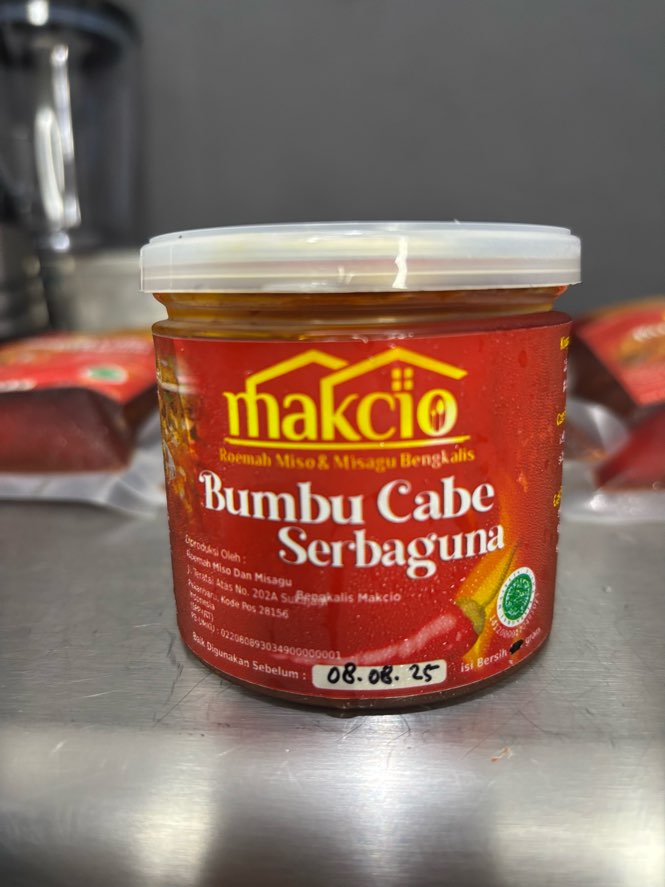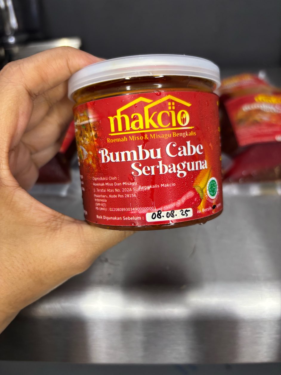 Satu bumbu, sejuta rasa! Bumbu cabe serbaguna Makcio hadir dalam kemasan praktis 200 gram, siap memudahkan Anda memasak berbagai hidangan favorit. Terbuat dari perpaduan cabai segar, bawang merah, bawang putih, dan bumbu pilihan lainnya, bumbu ini telah matang dan berbumbu lengkap—tidak perlu tambahan garam atau penyedap lagi.