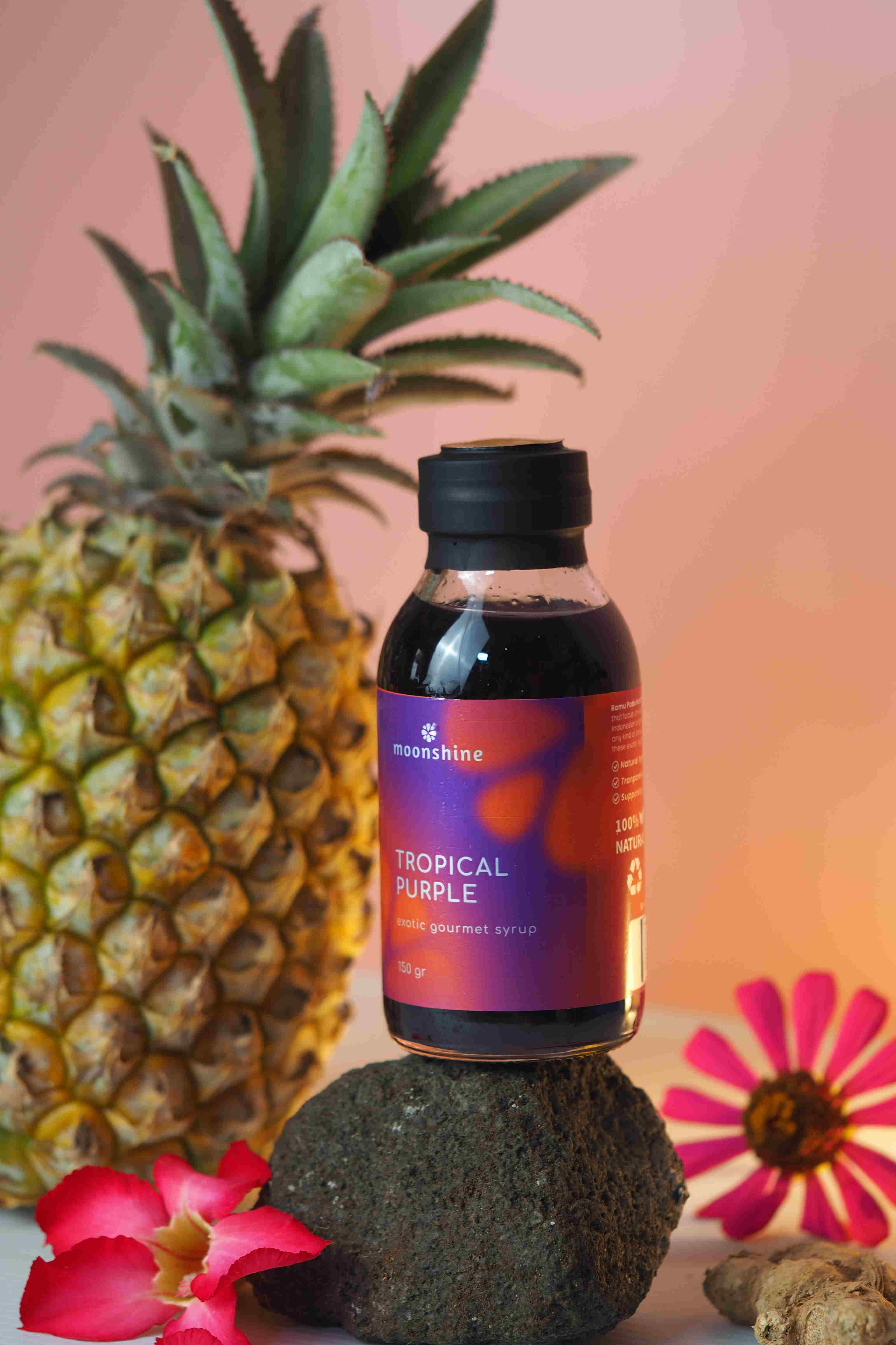 Tropical Purple adalah salah satu varian Natural Gourmet Syrup dari MoonShine. Sirup ini terbuat dari buah nanas, bunga telang, sedikit jahe, kayu manis dan gula tebu non rafinasi. Berwarna keunguan dari warna bunga telang. Rasanya manis, asam, 'semriwing', harum wangi khas nanas, dan segar! Kini MoonShine hadir dengan formula yang lebih disempurnakan, sehingga memiliki rasa yang lebih enak dan kandungan yang lebih pekat.
