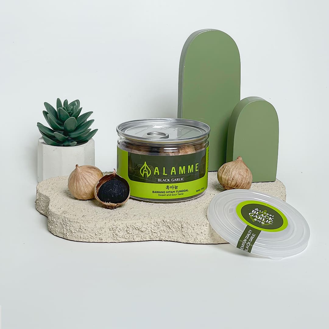 Black garlic adalah bawang putih yang difermentasi pada suhu dan kelembapan terkontrol selama beberapa minggu, hingga warnanya berubah menjadi hitam dengan tekstur lembut dan rasa manis asam mirip karamel. Proses fermentasi ini meningkatkan kandungan antioksidan serta senyawa aktif seperti S-allyl cysteine, yang bermanfaat membantu menjaga kesehatan jantung, mengontrol kadar gula darah, serta mendukung daya tahan tubuh.
