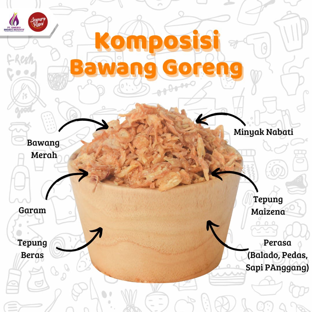 Bawang Goreng Brebes "Dapur Rasa" adalah produk yang terbuat dari bawang Brebes asli. Renyah, sehat, dan nikmat serta berkualitas tinggi. bawang goreng ini bisa buat lauk dengan cara ditaburkan di makanan Anda ataupun bisa buat camilan.