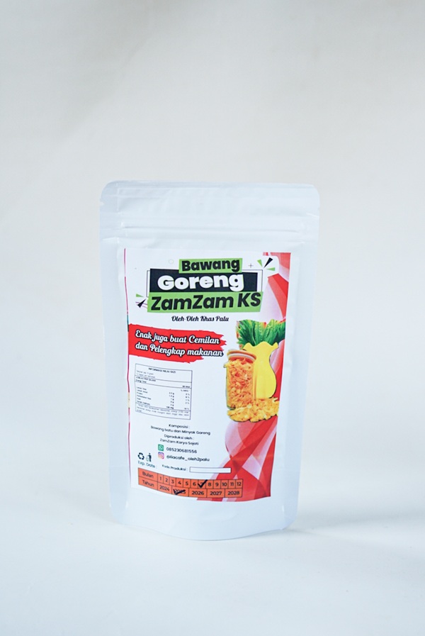 PT Zamzam Karya Sejati adalah UMKM yang berbasis di Kota Palu, Sulawesi Tengah, yang berfokus pada pengembangan oleh-oleh khas daerah. Usaha ini didirikan dengan tujuan melestarikan resep tradisional dan memberdayakan masyarakat lokal, khususnya perempuan. Produk unggulannya adalah bawang goreng dalam berbagai varian inovatif seperti original, pedas, ikan duo, taro, cokelat, jagung bakar, dan kelor. Keunggulan Zamzam terletak pada penggunaan bahan lokal berkualitas tinggi, proses pengolahan tradisional, serta kemasan modern yang sesuai untuk pasar oleh-oleh di bandara. UMKM ini juga melibatkan perempuan dan generasi muda secara aktif, sehingga memenuhi aspek women dan youthpreneur.