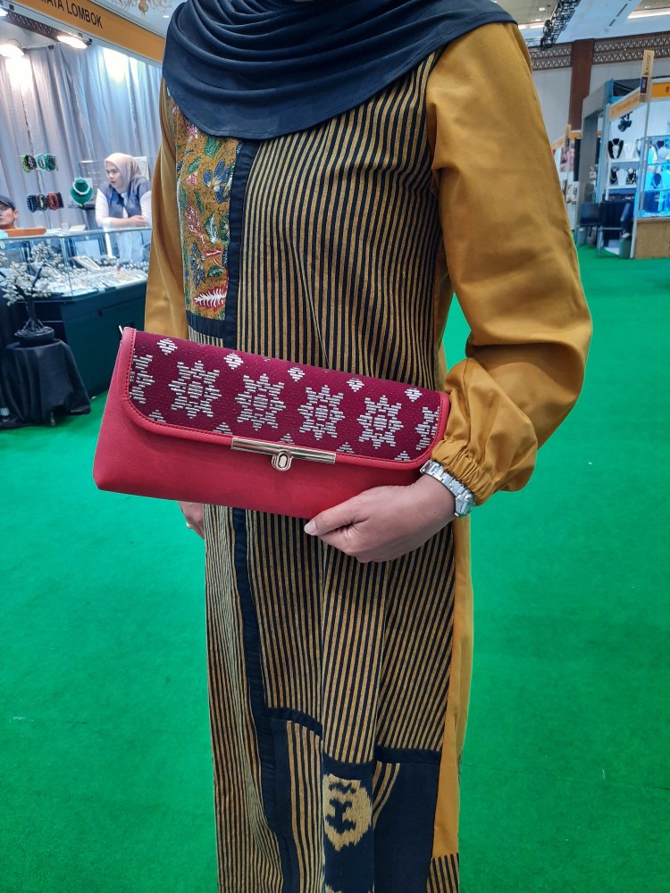 Clutch etnik ini merupakan produk handmade yang dibuat dengan penuh ketelitian, menggunakan material kombinasi antara kain suede yang lembut dan kain songket khas Aceh yang sarat akan nilai budaya. Perpaduan kedua material ini menciptakan tampilan yang elegan sekaligus mencerminkan kekayaan warisan lokal.