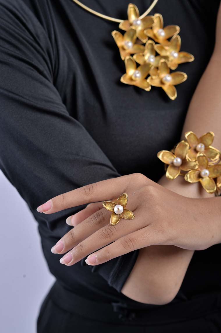 CINCIN KEMUNIING MEMPUNYAI BENTUK MENYERUPAI BUNGA KEMUNING YANG DIHIASI DENGAN MUTIARA AIR TAWAR
