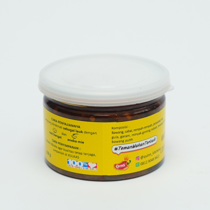 Kandungan Bahan: Cabai, minyak goreng nabati, bawang merah, bawang putih, rempah, garam, gula, penyedap rasa, natrium benzoat