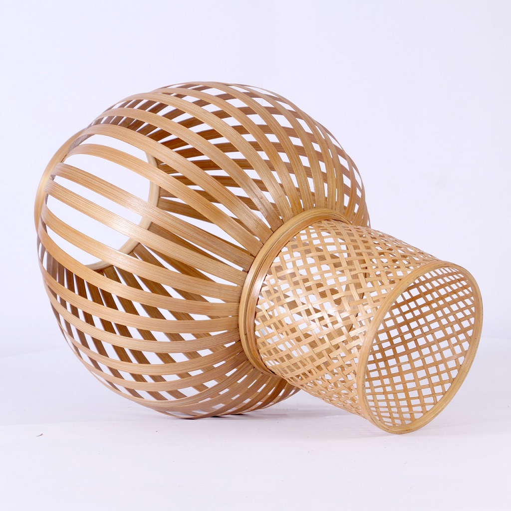 Penutup lampu yang terbuat dari anyaman bambu dengan penyangga