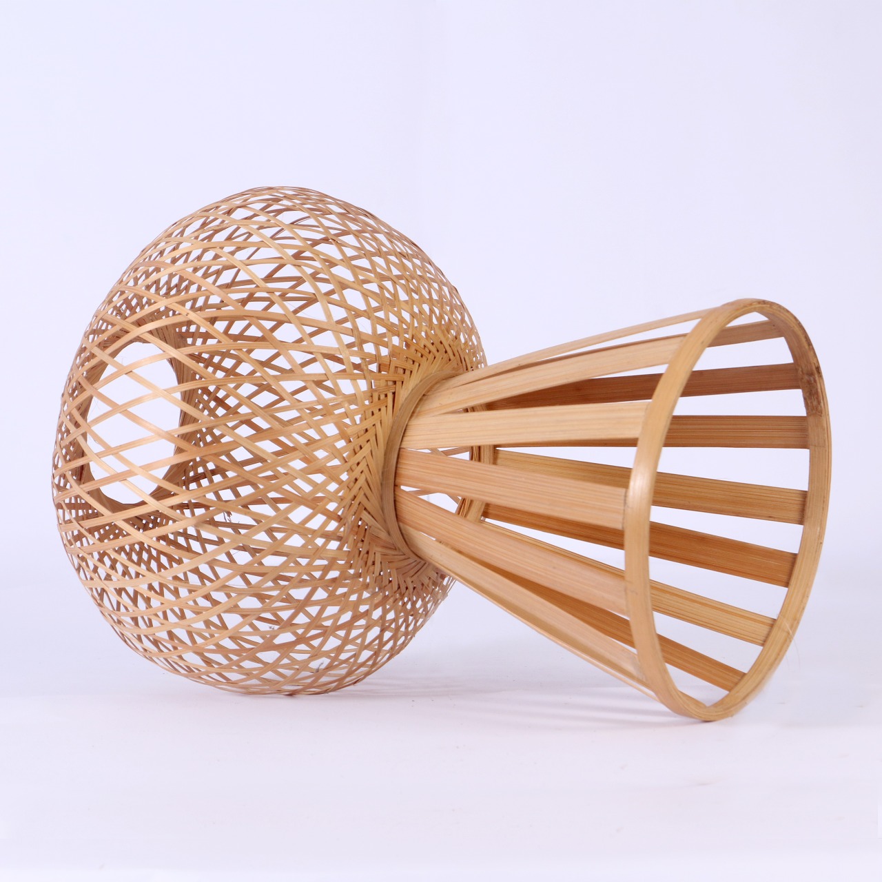 Penutup lampu dari anyaman bambu dengan penyangga