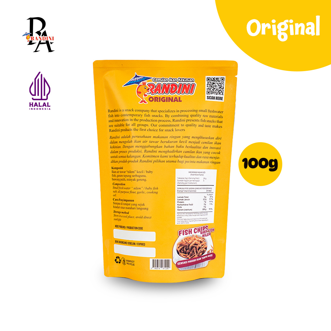 Nikmati kerenyahan dan kelezatan Cemilan Ikan Kekinian RANDINI Fish Chips rasa Original!