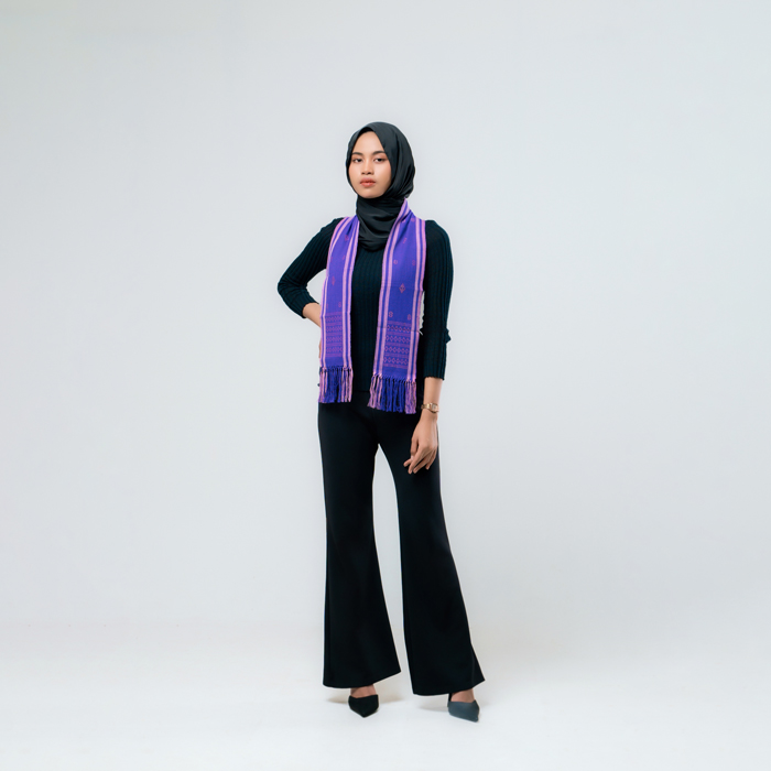 Syal Potongan Waji dan Bunga Tanjung (Ungu dan Pink Muda)
