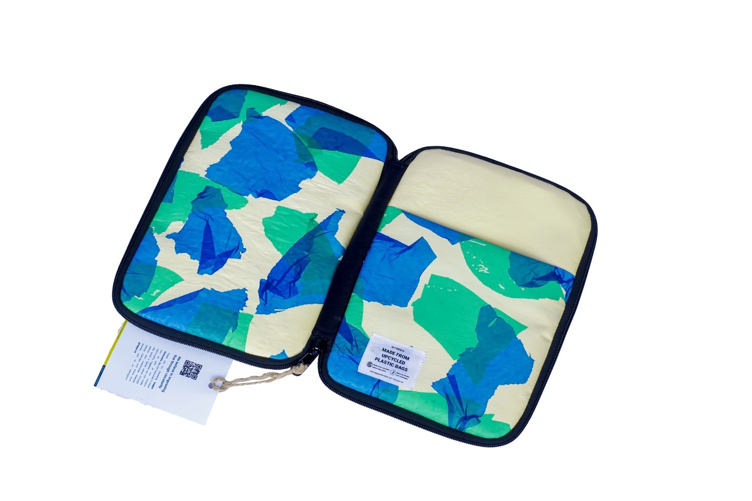 Menggunakan material daur ulang pada tampilan luar dipadukan dengan kain katun lembut bagian dalam.Memiliki banyak sekat untuk menyimpan Handphone dan Charger.