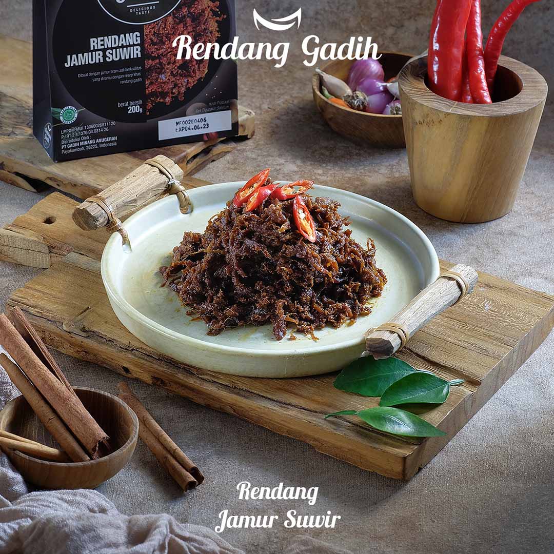 Dengan kemasan yg modern, produk “Rendang Jamur Suwir by Rendang Gadih” sangat cocok dijadikan sebagai bekal untuk perjalanan jauh seperti ke luar negeri, umroh, haji atau bisa juga dijadikan sebagai oleh-oleh/buah tangan buat keluarga/kerabat.