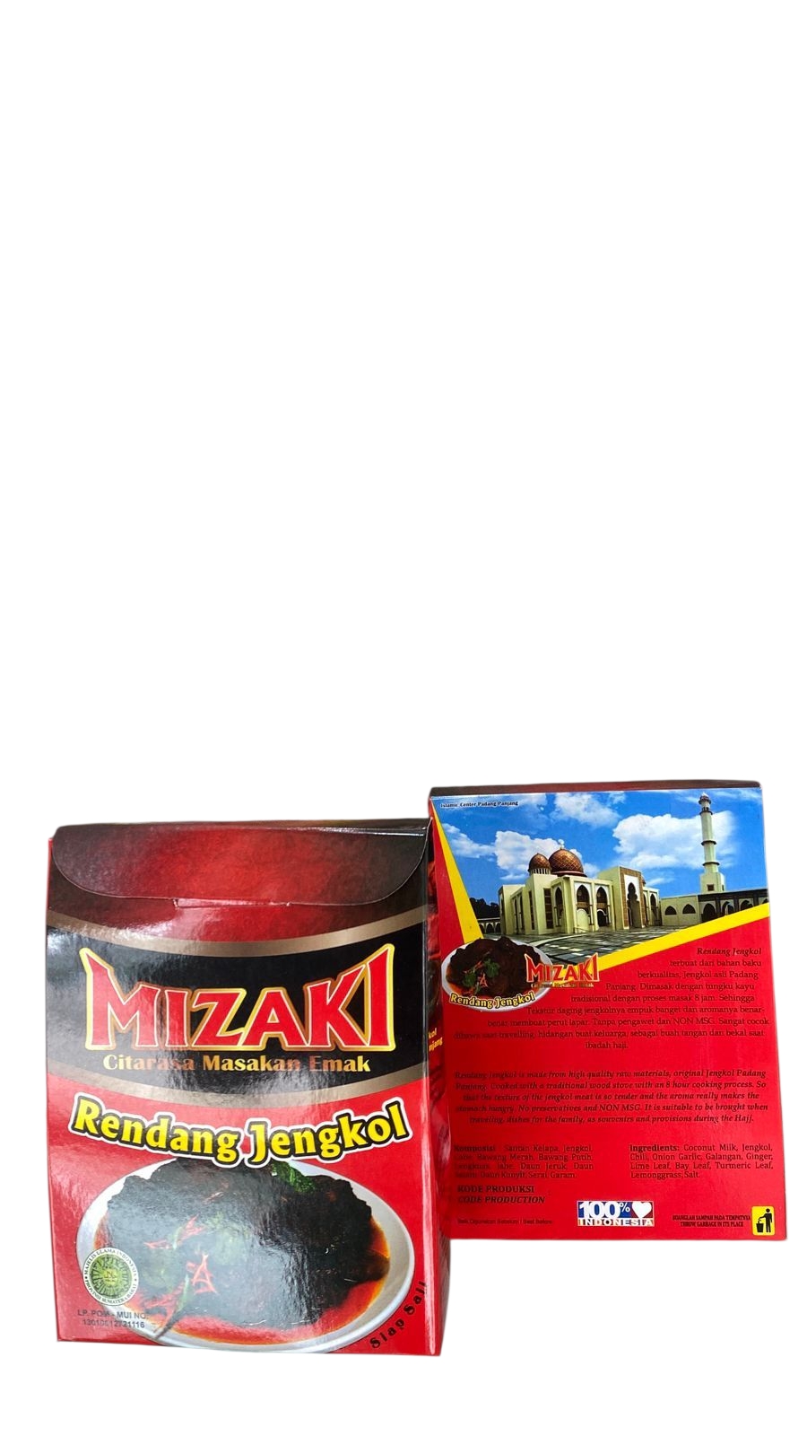 Rendang Mizaki menggunakan bahan baku lokal berkualitas dengan proses memasak Tradisional tungku kayu menjadikan rasa dan aroma rendang mizaki sangat khas dan mengingatkan kita akan masakan orang yang sangat kita rindukan. Aproved Halal dan BPOM,sudah menggunakan sterilisasi autoclaf pemanasan 121 derjat celcius. Produk premium dengan kemasan bervariasi dan daya tahan produk 1 - 2 tahun suhu ruangan. jumlah Produksi saat ini 1- 1.5 ton perbulan dengan berbagai macam pengiriman Domestik dan International.