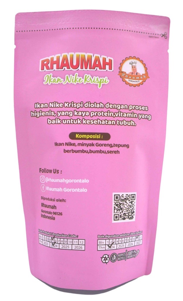 Rhaumah adalah UMKM yang menghasilkan produk olahan makanan siap Saji yang terbuat dari hasil perikanan. Adapun produk UMKM Rhaumah terdiri dari Ikan Payangga yang nama latinnya Glosogobius Gluris atau Ikan Manggabai adalah Ikan Air Tawar yang berasal dari Danau Limboto yang berada di Provinsi Gorontalo Indonesia dan Ikan Nike yang nama latin Avawous Melanochepalus Ikan Nike adalah merupakan Ikan Endemik khas Gorontalo Indonesia yang terdapat dimuara perairan teluk tomini. UMKM Rhaumah berdiri sejak Tahun 2018, Sering berjalannya waktu kami mendapat saran dari Saudara Sahabat agar produk ini dijadikan sebuah usaha dengan memberdayakan tetangga sekitar menjadi tenga kerja.