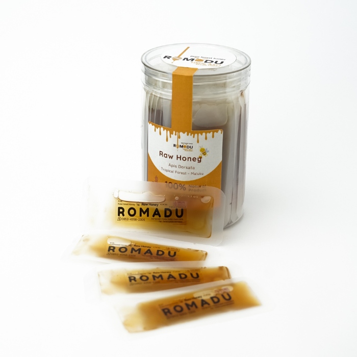 Rasakan kekuatan alami Madu Hutan Murni kami, kini hadir dalam stoples praktis berisi 50 sachet @15 ml. Dikemas untuk kemudahan dan efisiensi, madu ini Dipanen langsung dari hutan belantara yang asri di pulau Romang, kabupaten Maluku Barat Daya, Provinsi Maluku, Indonesia. ROMADU, bebas dari polusi dan penuh nutrisi. Ideal untuk dinikmati langsung, dicampur ke dalam minuman favorit, atau sebagai pemanis sehat untuk camilan Anda. 100% Murni & Alami: Tanpa tambahan gula, pengawet, atau pewarna buatan.