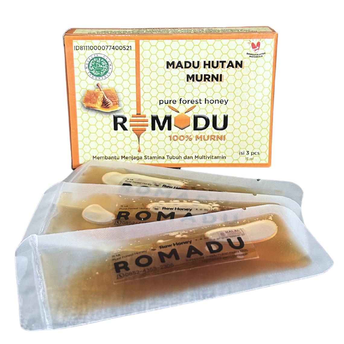 Diambil dari hutan Pulau Roma, Kabupaten Maluku Barat Daya Provinsi Maluku, ROMADU 100% murni madu hutan tanpa bahan pengawet. Madu ini diambil dari tebing-tebing yang curam di dalam hutan. Petani berjuang untuk mengambilnya dengan cara tradisional namun menjadi mata pencaharian turun-temurun. Dan menjadi mata pencaharian utama masyarakat setempat. Namun, nilai jual sangat rendah. Karena itu kami membuat madu dalam kemasan premium yang menggunakan kaca. Dan untuk menjangkau pasar lebih luas lagi, maka Romadu dikemas dengan kemasan yang ekonomis yaitu kemasan sachet isi 3.
