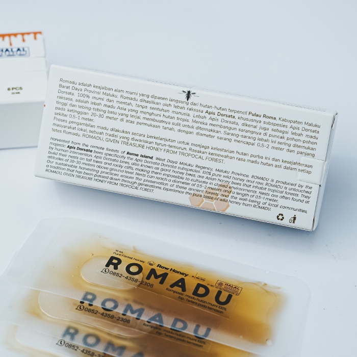 Usaha madu hutan ini bermula dari opa saya di tahun 70an dengan kemasan botol biasa tanpa merek. Tahun 2016, saya kemudian berpikir untuk membrand usaha madu yang sudah tiga generasi ini dengan nama ROMADU, ROMA dan MADU artinya madu dari Pulau Roma, Kab. Maluku Barat Daya, Maluku - Indonesia. ROMADU adalah Madu Hutan murni tanpa pemrosesan (RAW HONEY) yang terproduksi secara alami dari hutan. memanen madu merupakan salah satu mata pencaharian utama masyarakat di sana dan menjadi local wisdom. Romadu hadir dengan niat membantu mensejahterahkan masyarakat pemamen madu. ROMADU adalah Madu Hutan murni tanpa pemrosesan (RAW HONEY) yang terproduksi secara alami dari hutan.