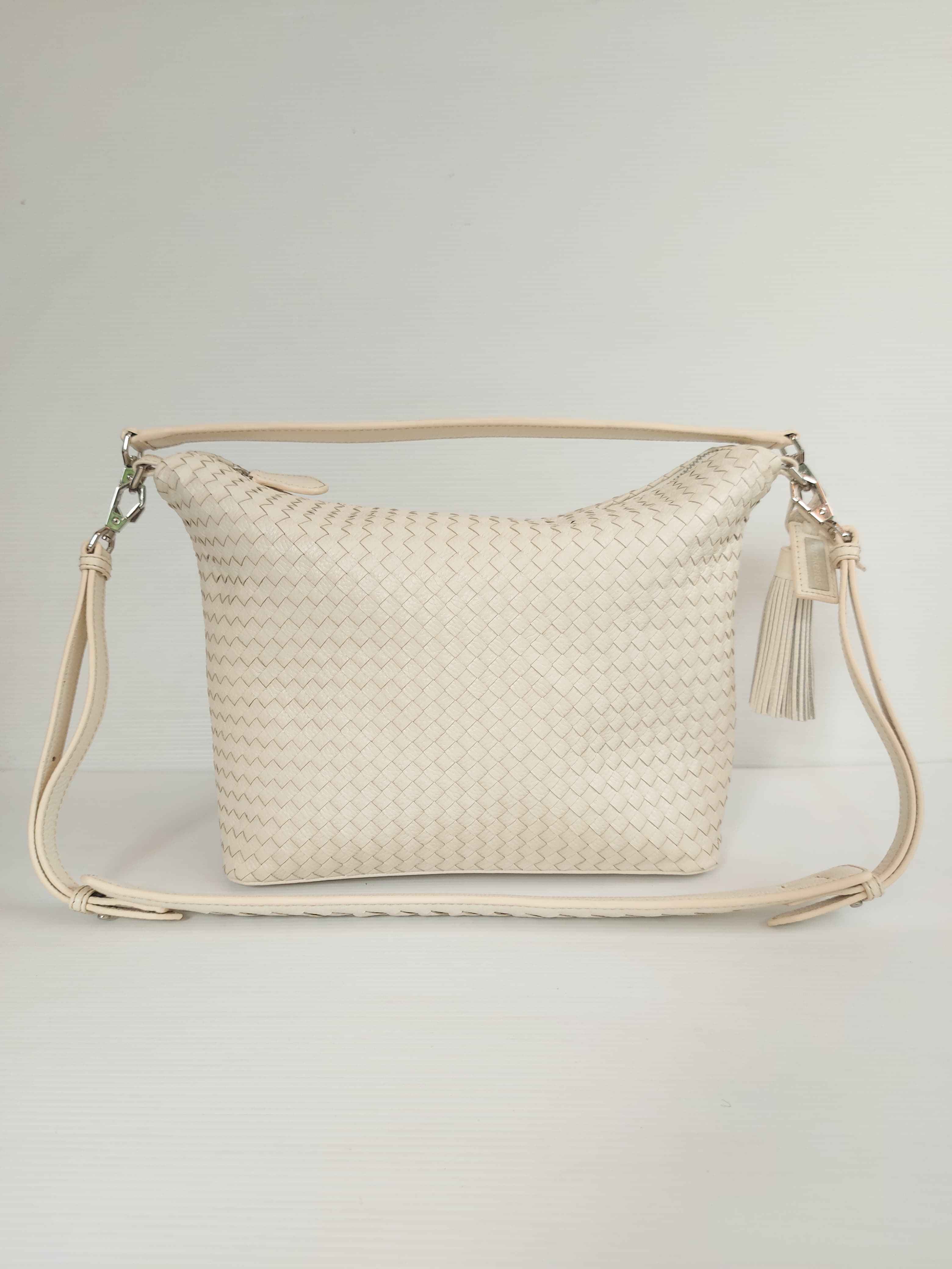 Hobo bag dengan anyaman kulit sapi asli, pada bagian dalam tas dilapisi dengan kain suede yang tersedia kantung ritsleting dan kantung terbuka. Keong Ayu tersedia tali panjang dan tali pendek yang dapat di lepas pasang menyesuaikan gaya