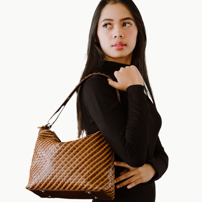 Keong Ayu Sulur terbuat dari anyaman kulit sapi asli, dengan motif anyaman sulur, termasuk dalam jenis tote bag. Lengkap dengan Resleting bagian luar, 2 kantong dalam dan 1 kantong dalam dengan resleting.