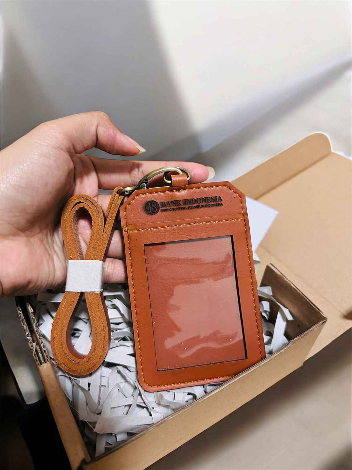 Perpaduan antara fungsi dan nilai budaya hadir dalam ID Card Holder ini. Didesain dari anyaman tradisional yang dipadukan dengan kulit sintetis berwarna caramel, produk ini hadir sebagai simbol identitas yang berkelas dan berkelanjutan.