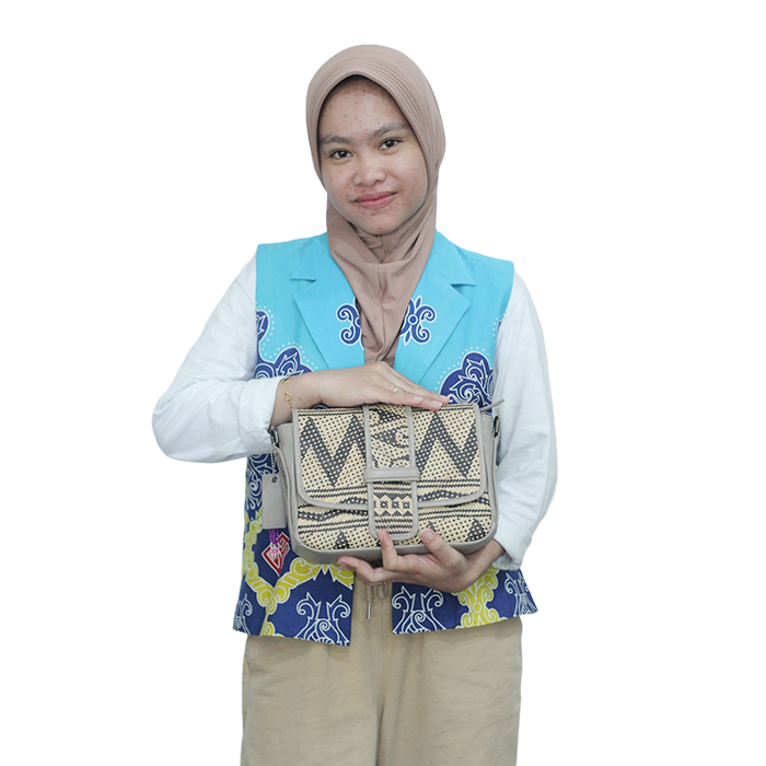 Perpaduan serat alami tumbuhan dan nabati, dengan sentuhan anyaman Indonesia, didesain dengan model yang lebih internal. Didesain dengan model seminar kit namun tetap mengikuti perkembangan zaman.