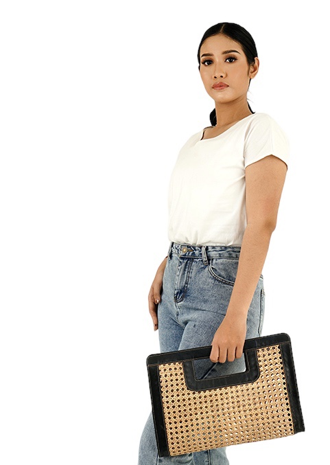 Perpaduan serat tumbuhan dan tumbuhan alami, dengan sentuhan anyaman Indonesia, didesain dengan model formal unisex.