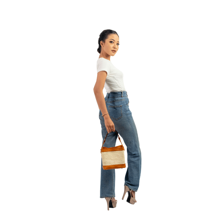 Tas anyaman lontar kombinasi kulit dengan grafir logo rotenbi