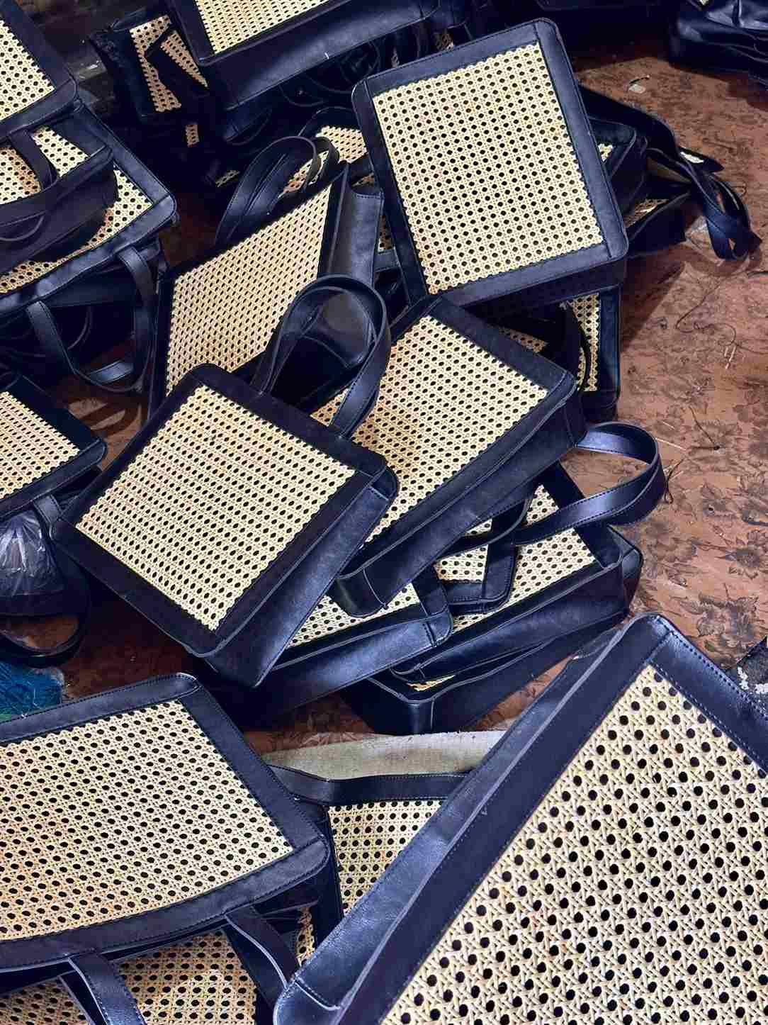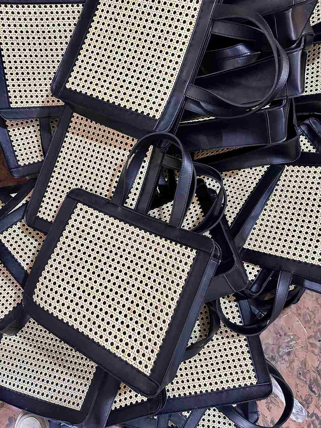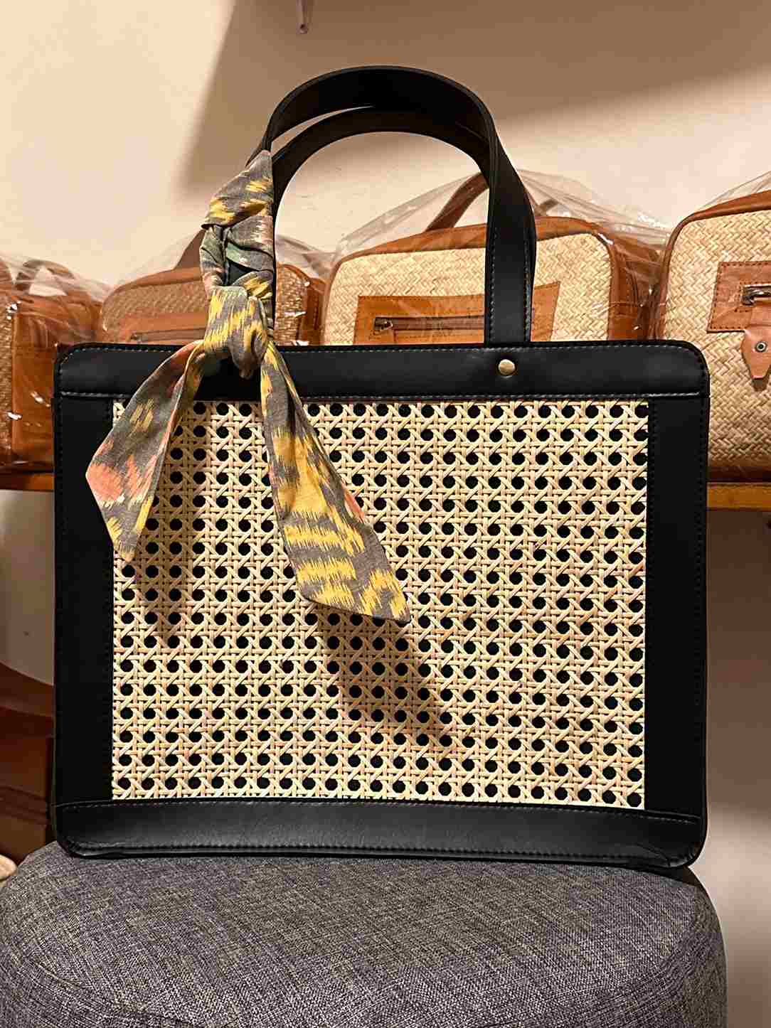 Perpaduan apik antara anyaman rotan alami dengan kulit sintetis berwarna hitam elegan menciptakan tas yang fungsional sekaligus berkarakter. Didesain dengan sentuhan modern tanpa meninggalkan akar budaya, tas ini cocok digunakan untuk kegiatan formal maupun kasual.