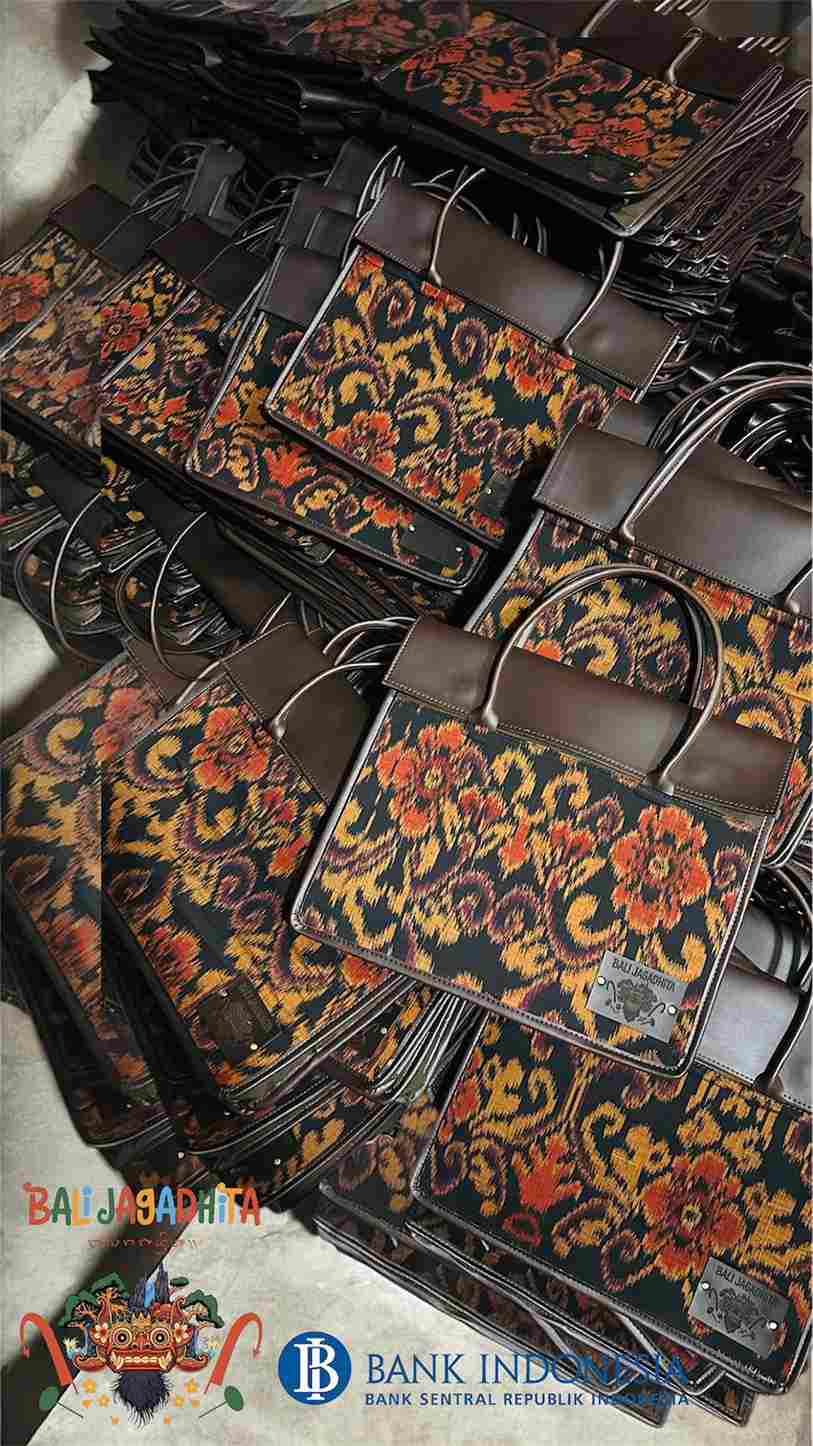 Dibuat dengan penuh ketelitian, tas ini memadukan unsur tradisional dan modern secara harmonis. Material utama berupa tenun ikat khas Nusantara yang penuh makna budaya, dipadukan dengan sentuhan kulit sintetis premium di bagian pegangan dan trim, menghasilkan tampilan mewah dan elegan.
