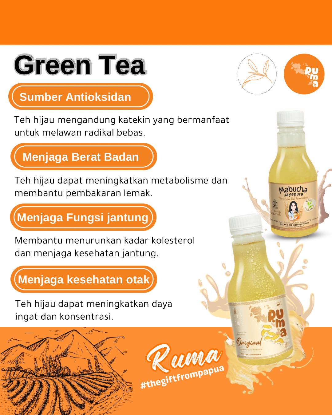 **Mimpi Jadi Nyata** RUMA lahir dari mimpi Dian Lestari, praktisi kesehatan holistik dan ibu tiga anak, yang ingin mendukung perempuan Papua tetap produktif. Dimulai awal 2023 sebagai “Mabucha Jayapura”—Mama buat kombucha dari Jayapura—70% pelanggannya kini adalah perempuan. Kampanye rutin memperkuat komunitas perempuan lokal. Kini hadir di 8 kota besar Papua, didistribusikan ke hampir 100 toko & HoReCa. Di tahun kedua, RUMA menjalani rebranding; “RUMA” berarti rumah—simbol kasih, kekuatan, dan harapan. Logo berbentuk Papua dan warna oranye cerah mencerminkan semangat kami membawa warisan alam & budaya Papua untuk dinikmati kapan saja, di mana saja. **#MenyegarkanIndonesiaDariPapua**