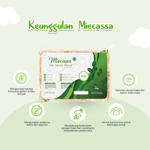 Miecassa merupakan mie rendah gluten dengan tepung mocaf sebagai bahan baku utama. Diracik dari bahan-bahan terbaik untuk menghasilkan mie yang lezat untuk konsumsi keluarga Anda.