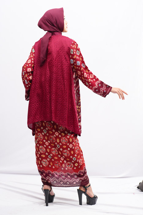 ONE SET JUMPUTAN TITIK 7 KOMB SONGKET UMPAK + DALAMAN VISCOS TGN PANJANG + ROK LILIT JUMPUTAN TITIK 7 MARRON