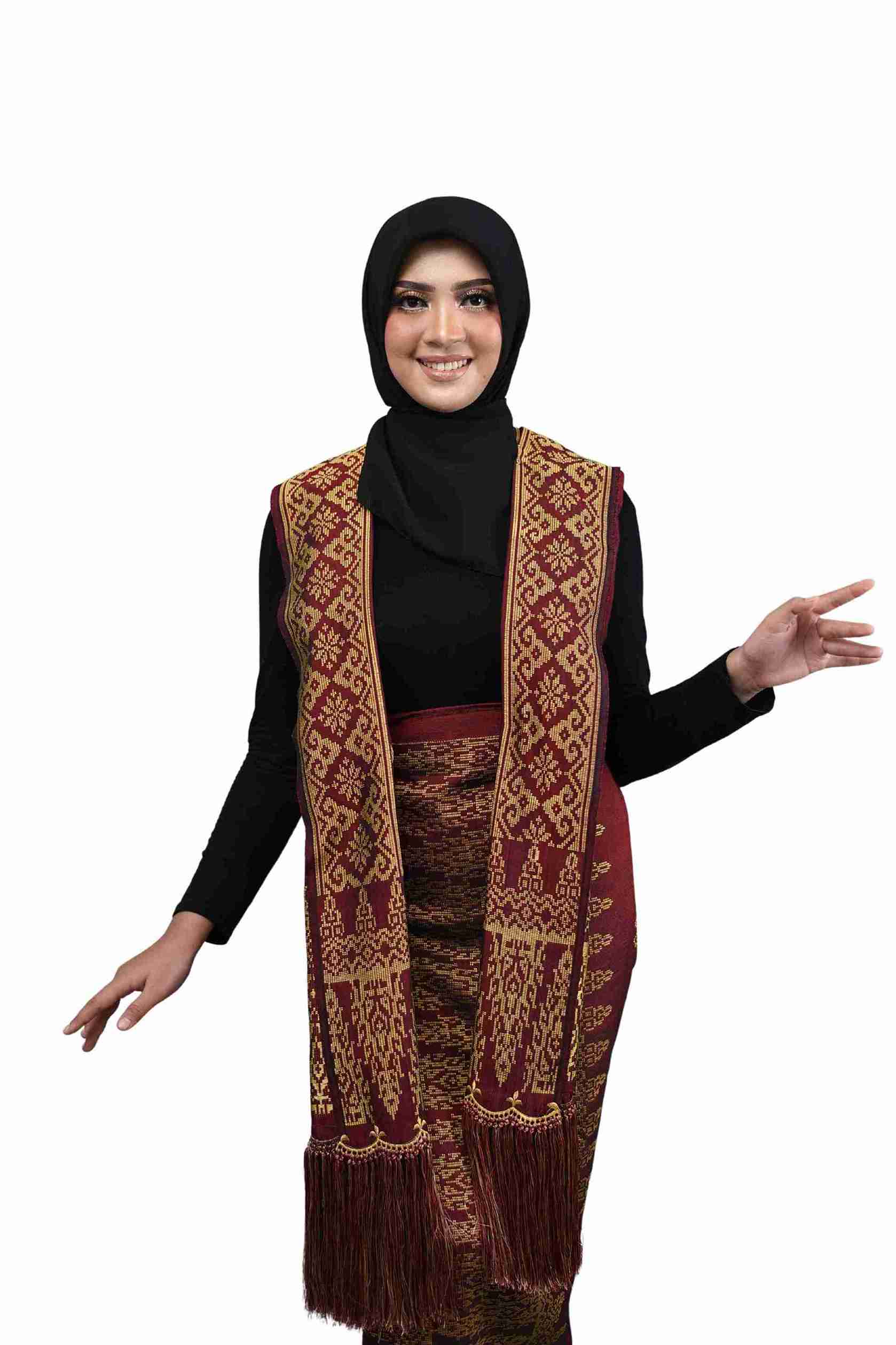 Makna Motif: Filosofi : Memakai tenun tajuk puteri, Adat tegak lembaga berdiri, Niat sampai murahlah rezeki, Tuah menjadi payung neegeri