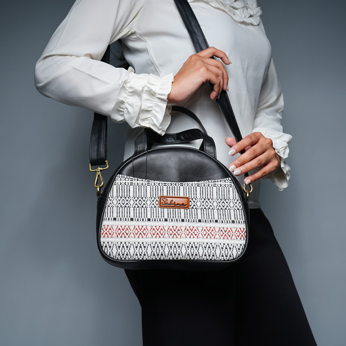 Tas elegan yang dibuat dari perpaduan kain ulos khas Nusantara dan kulit sintetis premium. Desain modern berpadu dengan sentuhan budaya, cocok untuk tampil stylish di berbagai kesempatan.