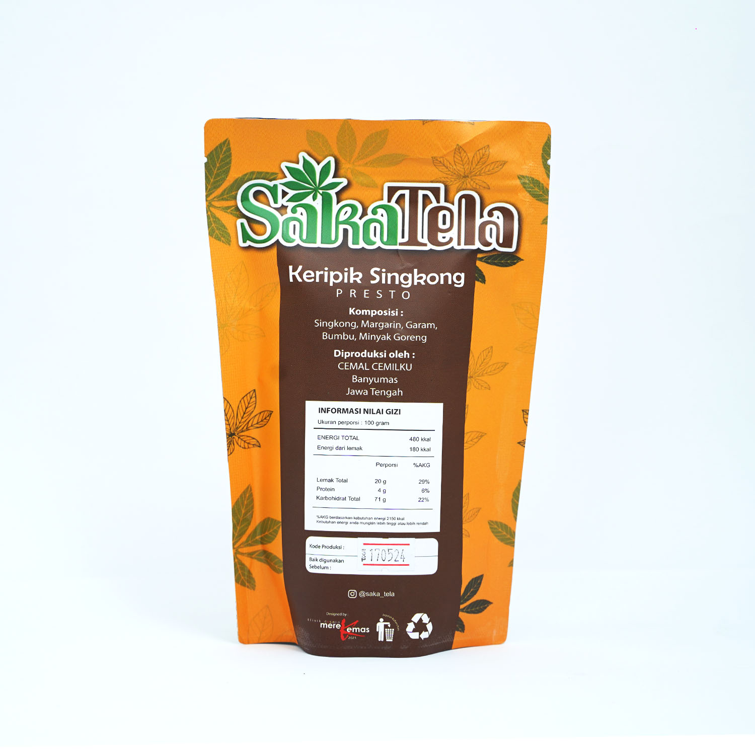 Sakatela adalah keripik singkong yang terbuat dari bahan-bahan berkualitas, melalui proses perebusan sebelum digoreng, menjadikan keripik ini teksturnya lembut dan renyah yang membuatnya berbeda dengan keripik singkong yang ada di pasaran. Irisan yang kecil memudahkan untuk dikonsumsi dan proses spinner setelah digoreng membuat rasa sakatela semakin gurih dan renyah. Sakatela memiliki legalitas berupa PIRT, Halal dan HKI. Umur simpan produk 10 bulan