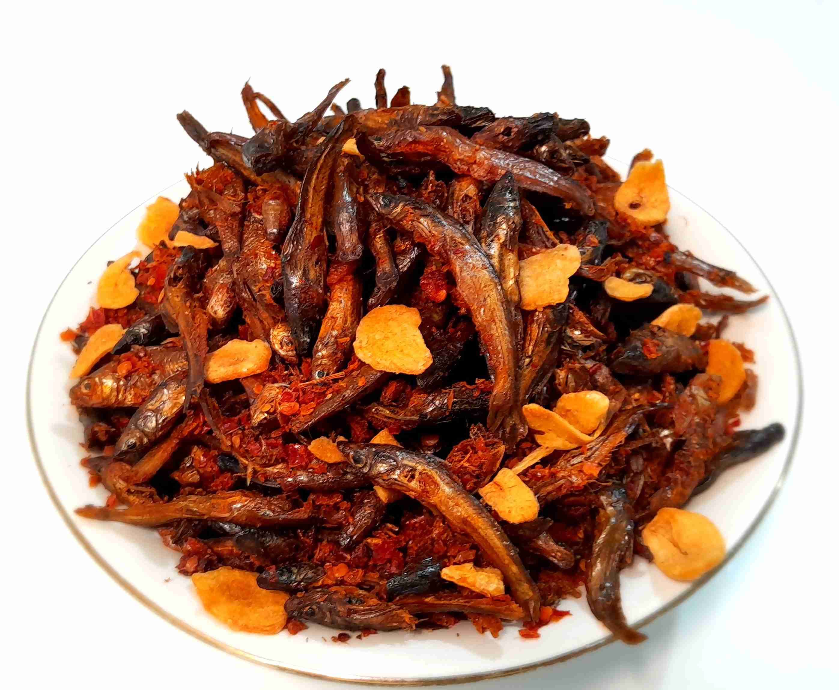 Kandungan Bahan: Ikan salai kecil, cabai, bawang, bumbu rempah, minyak nabati