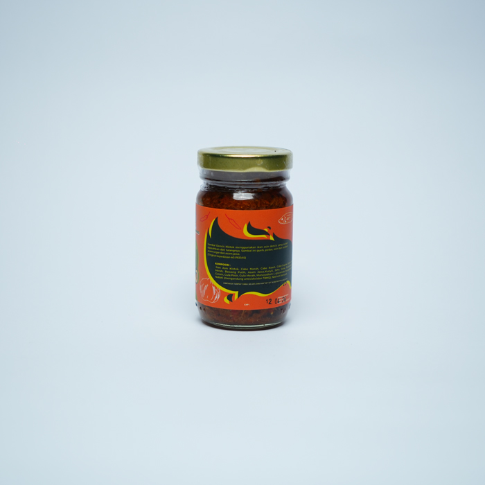Kandungan Bahan: Ikan dencis asin, cabe merah, cabe rawit, bawang merah, bawang putih, jahe, kunyit, serai, daun jeruk, tomat, gula merah, dll