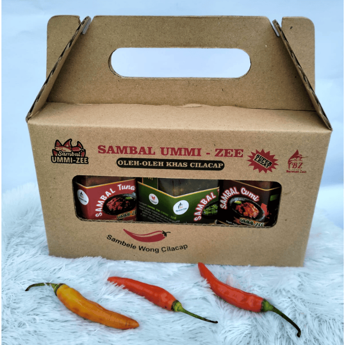 Adalah paket sambal yang berisi 3 farian sambal. Ada sambal tuna, sambal cumi, Sambal teri.