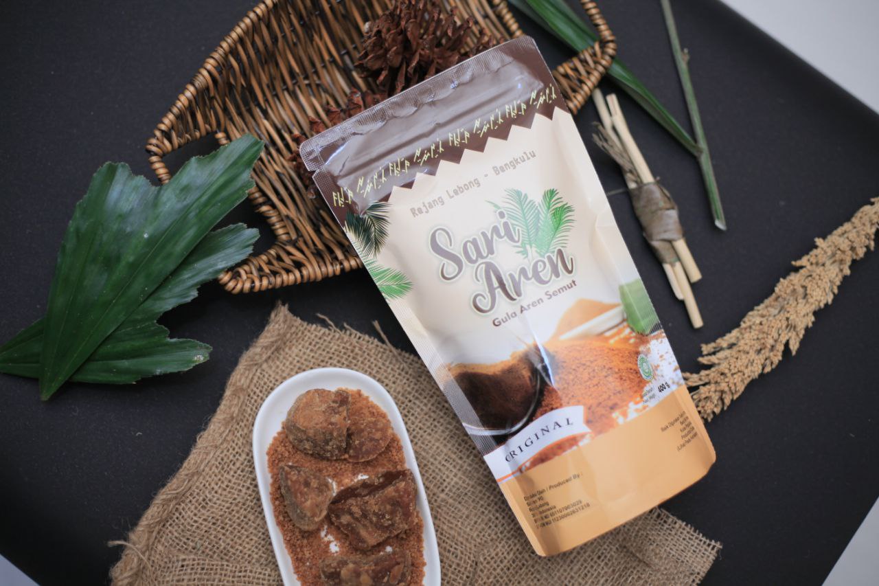 Gula Semut Sari Aren merupakan gula murni dari bahan dasar Nira Aren yang berasal dari Kabupaten Rejang Lebong, Provinsi Bengkulu. Sari Aren telah melakukan pengolahan nira aren secara higienis serta diseleksi menjadi produk olahan Gula Semut “Sari Aren” yang berkualitas premium. Gula Semut Sari Aren memiliki berbagai varian rasa yaitu original, bandrek, dan jahe merah. Gula Semut Sari Aren diolah secara higenis dengan standar pengolahan yang telah mendapatkan izin edar BPOM dan 100% organik tanpa bahan kimia apapun. Gula Semut Sari Aren dapat digunakan sebagai bahan pemanis minuman maupun makanan.