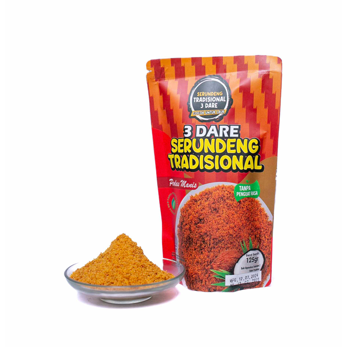 Serundeng Traldisionall 3 Dare berdiri di Kabupaten Kubu Raya pada tahun 2017, berawal dari memanfaatkan kelapa tua yang tidak dimanfaatkan masyarakat dimana potensi kelapa cukup besar di Kabupaten kubu Raya. Kemudian mencoba mengolah kelapa tua tersebut menjadi produk yang bernilai jual tinggi yaitu Serundeng Tradisional dengan varian rasa Original dan Pedas Manis. Produk sudah memiliki sertifikat halal dan dibangun oleh seorang wanita dengan mempekerjakan banyak pekerja wanita dari lingkungan sekitar.